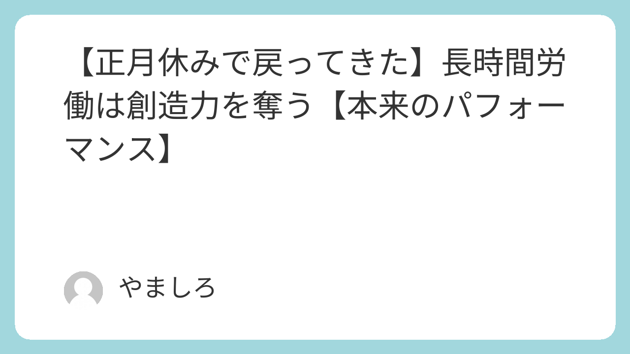 【正月休みで戻ってきた】長時間労働は創造力を奪う【本来のパフォーマンス】
