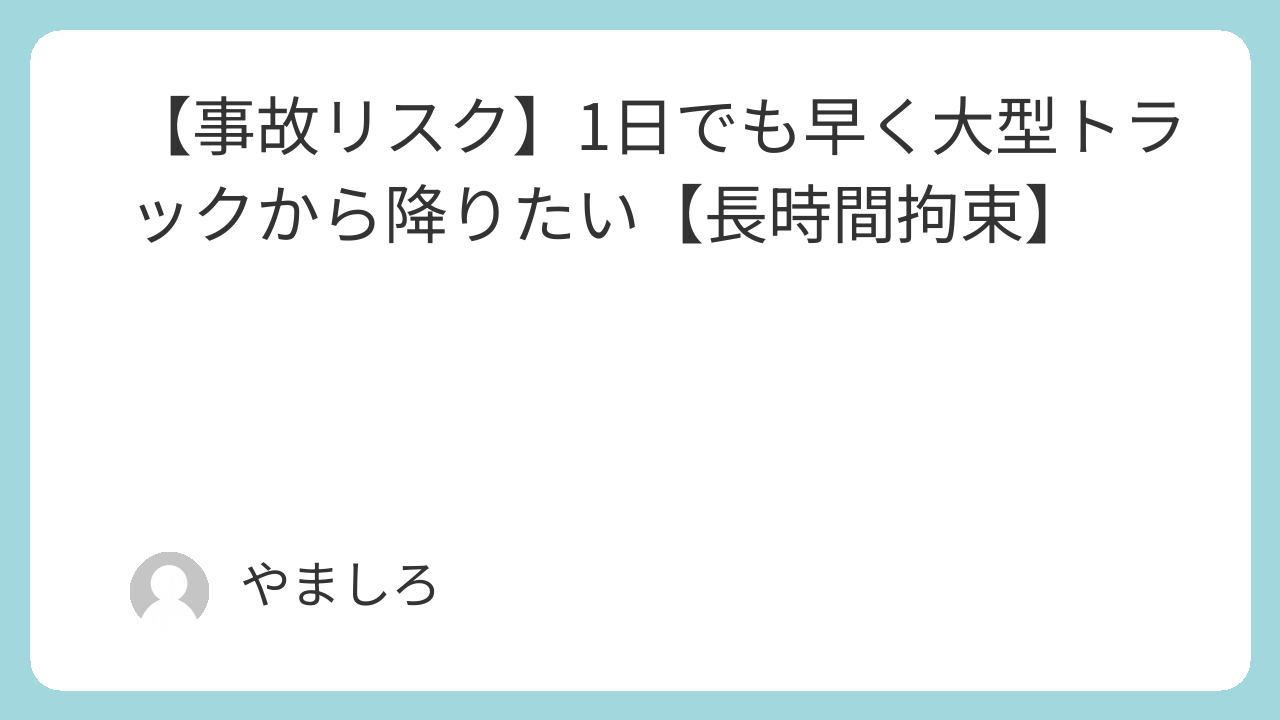 【事故リスク】1日でも早く大型トラックから降りたい【長時間拘束】